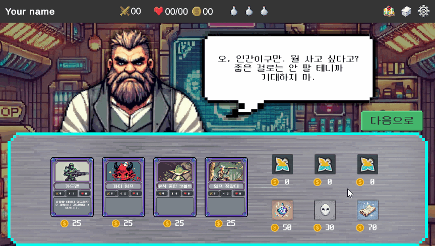 - November 25, 2024 by Wintersleep#AI Generated, #Deck Building, #Fantasy, #Management, #Monsters, #Pixel Art, #Roguelike, #Sci-fi, #UnityWe've recently implemented the shop system in our game. Potions, artifacts, and cards are randomly selected from the database and displayed in the catalog. Players can purchase items with a single cli... Continue reading